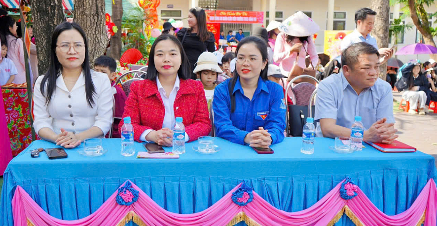 Trong khuôn khổ chương trình, quý đại biểu, quý thầy cô giáo, quý vị phụ huynh và các em học sinh đã cùng tham quan, vui chơi, mua sắm và ủng hộ các gian hàng “Hội chợ tuổi thơ”. Hội chợ được tổ chức phong phú, đa dạng với nhiều gian hàng mang đậm không khí Tết truyền thống. Khối 8 tham gia với 5 gian hàng ẩm thực hấp dẫn; Khối 7 tổ chức 3 gian hàng đồ lưu niệm, bánh kẹo, mứt, đồ uống ngày Tết; Khối 6 mang đến các gian hàng sách truyện, đồ dùng học tập, quà lưu niệm cùng một số trò chơi dân gian có thưởng. Bên cạnh đó, gian hàng của Chi đoàn giáo viên cũng góp phần tạo nên sự gắn kết giữa thầy cô và học sinh trong một không gian xuân ấm áp, thân thiện.