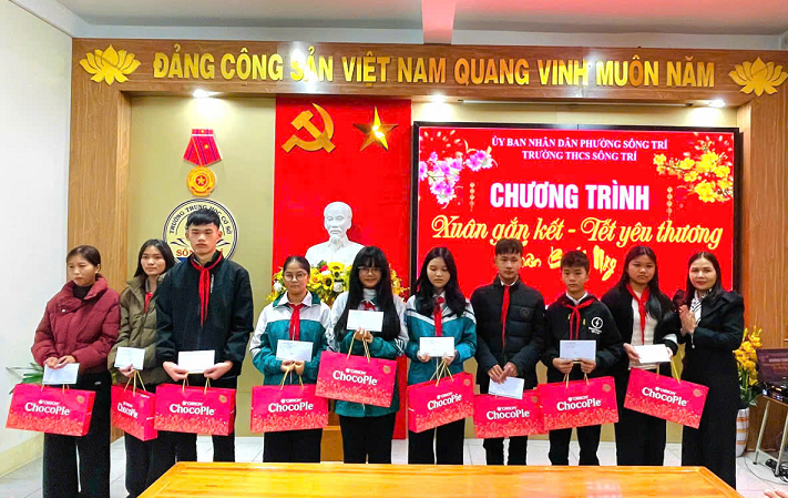Điểm nhấn đầy ý nghĩa của chương trình là hoạt động trao quà Tết cho học sinh, có 80 suất quà Tết đã được trao. Trong đó, Doanh nghiệp vàng bạc Kim Hà Vy trao tặng 20 suất quà trị giá 10 triệu đồng; Ngân hàng Agribank Chi nhánh Nam Hà Tĩnh trao 12 suất quà trị giá 6 triệu đồng; Ngân hàng BlDV phòng giao dịch Nam Hà Tĩnh trao 6 suất quà trị giá 3 triệu đồng; Doanh nghiệp vàng bạc Phú Nhân Nghĩa trao 5 suất quà trị giá 2,5 triệu đồng; Công ty TNHH Bao bì Long Lê trao 10 suất quà trị giá 6 triệu; May mặc Hà Hiền trao tặng 20 chiếc áo ấm đồng phục. Mỗi phần quà là một lời chúc xuân an lành, là sự sẻ chia chân thành gửi đến các em trong dịp Tết đến, xuân về.